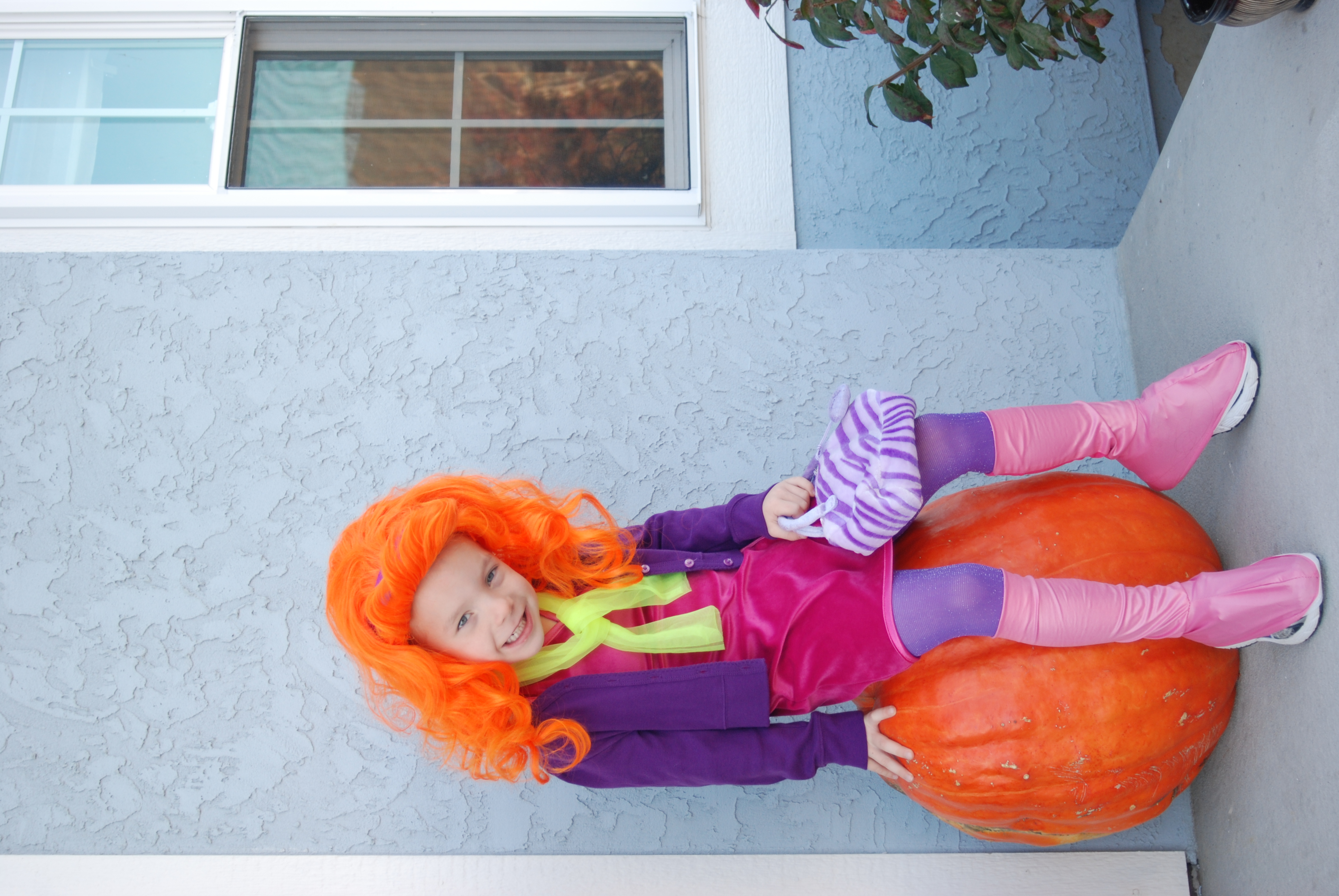 CW: I am so proud of my brave little Daphne. He has wanted to be her since before last Halloween. He was too nervous last year. He had a few moments where he was worked up about people making fun of him, but mustered up the courage to go for it. He held his little orange wig high today.