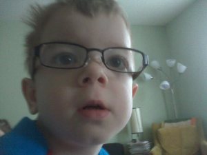 With that face, he could wrap me around his little finger! What a cutie! And I’m with you…little kids with glasses are adorable; they look like they’re playing grown-up!