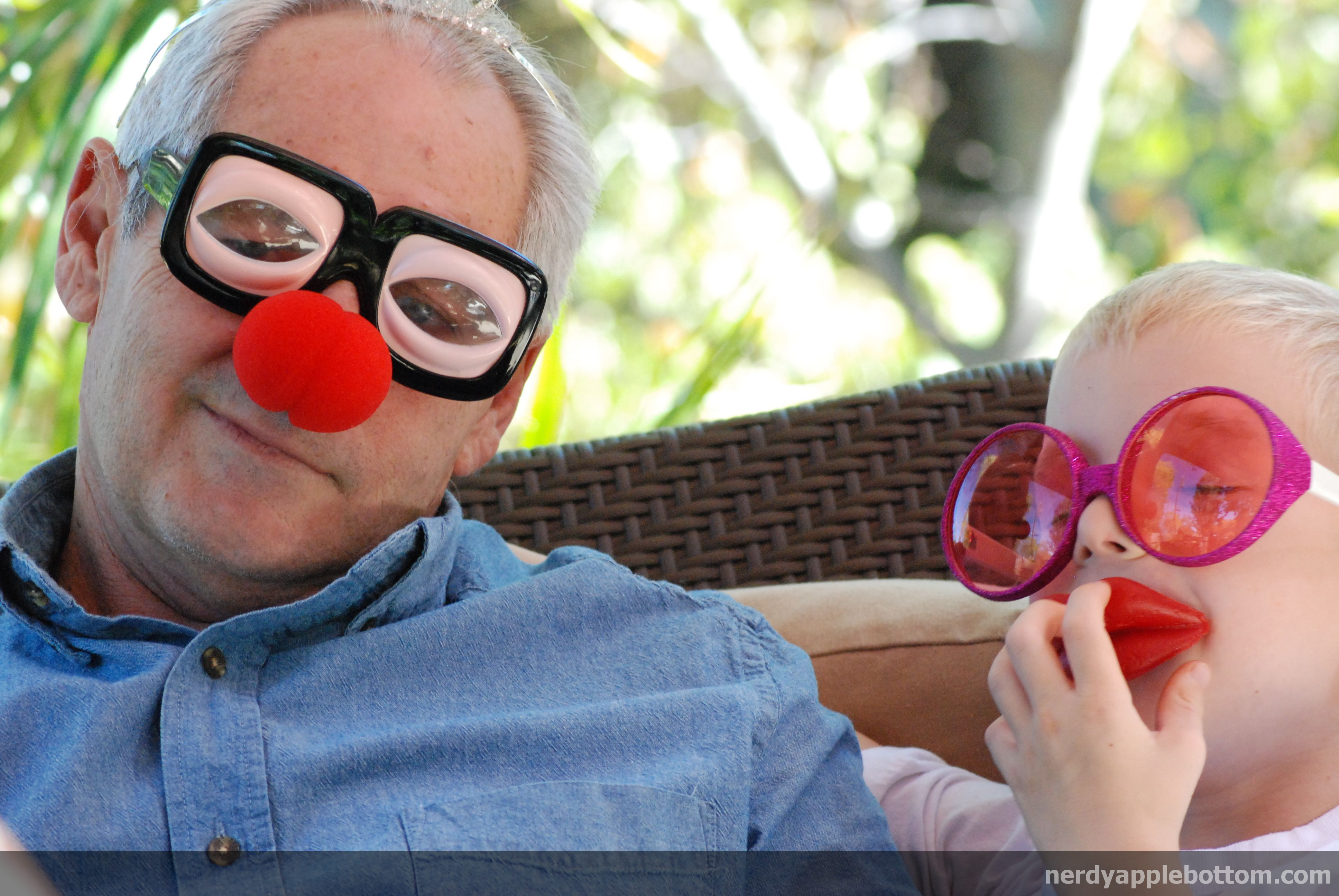 Plus, he will put on wigs and glasses and costumes for hours because I asked him to. And because the shorties found it to be hilarious. I love this photo because it shows how much Boo loves his Papa. He has his arm around his shoulder, his little eyes closed, and trying to keep his wax lips in because he was laughing so hard at my father-in-law’s antics. Plus, Papa is wearing a tiara.